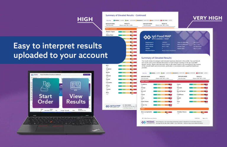 MosaicDX’s IgG Food MAP tests measure antibodies to common foods, herbs, and spices typically found in Western, Asian, and Mediterranean diets also include results for candida and yeast. MosaicDX test for 190 Foods + Candida and Yeast. These tests are available in dried blood spot formats, making it easy and convenient for patients. By identifying food sensitivities, these tests can help individuals customize their diet leading to improvements in overall health and wellbeing.